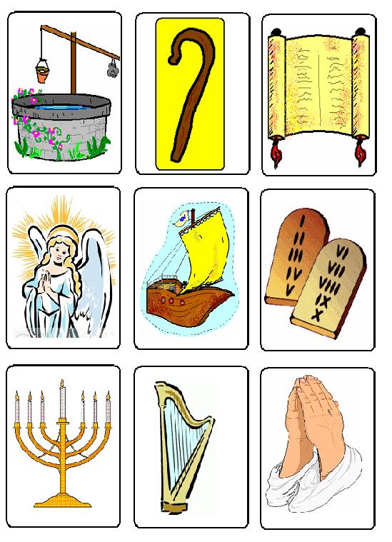 Spuneţi copiilor că astăzi urmează să îşi verificele cunoştinţele din Cuvântul lui Dumnezeu, într-un mod mai diferit.  Ĩmpărţiţi copiii  în două echipe şi chemaţi pe rând cate un reprezentant al fiecărei echipe să extragă un cartonaş- indiciu din Biblie. Numiţi cu voce tare imaginea ptr a vă asigura că ştie ce reprezintă, şi din momentul acela începeţi să cronometraţi 15 (sau puteţi hotărâ şi mai multe), timp în care copilul trebuie sa spună trei situaţii / întâmplări sau personaje care să aibă legătură cu imaginea de pe cartonaşul extras.