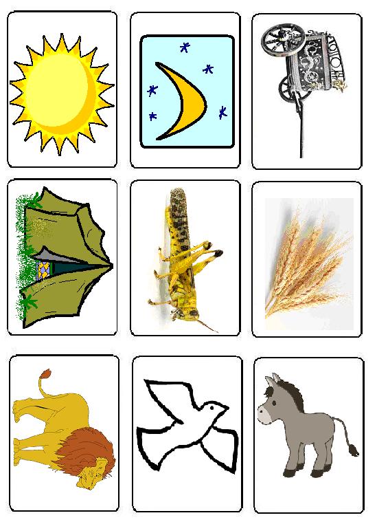 -ptr cartonaşul cu imaginea soarelui: Ĩn Genesa 1 Dumnezeu a creat luminătorii cerului; la lupta de la Gabaon, Dumnezeu a făcut să stea soarele pe loc; când Iona aştepta distrugerea cetăţii Ninive, a suferit din cauza soarelui dogoritor;